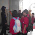Siswa mengantri untuk memberikan surat yang akan dikirim kepada petugas.