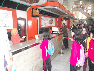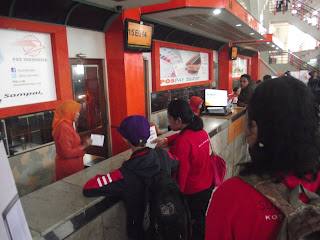Siswa mengantri untuk membeli perangko dan amplop surat
